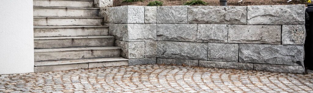 Belegningsstein, brostein, heller og pene steinmurer gir et vakkert uterom. Enten du vil bruke granitt, skifer eller betongstein, kan Uterom Entreprenør AS skreddersy løsninger i samarbeid med deg som kunde.